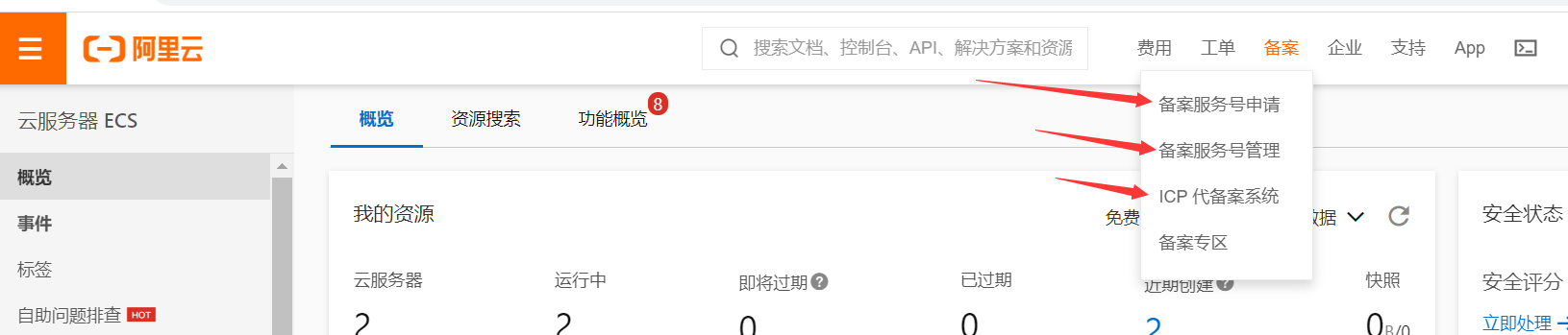 4、备案,在阿里云的控制台界面,具体备案步骤呢,也就不多说了,往后有机会出一篇备案的攻略。