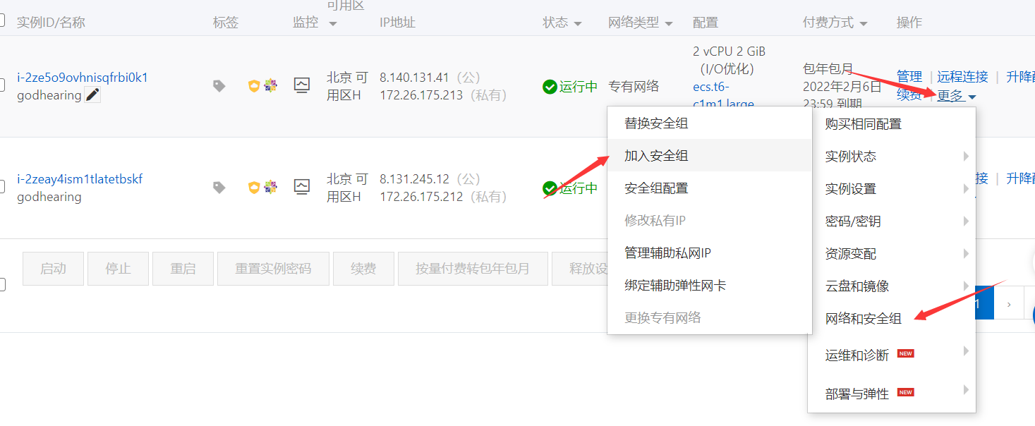 最后回到 ECS 服务器实例,将刚刚配置的安全组加入到实例中。