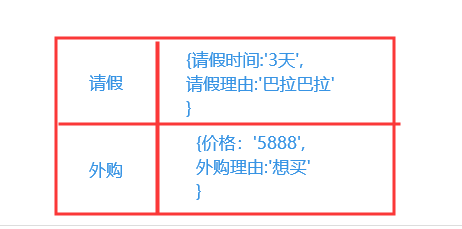 比如,工单的创建,假如有请假,外购两个工单,请假需要的字段为请假时间,请假理由,而外购的工单需要价格,理由,而两个工单的审批人也都不同,但是,要求两张工单都在同一张表里