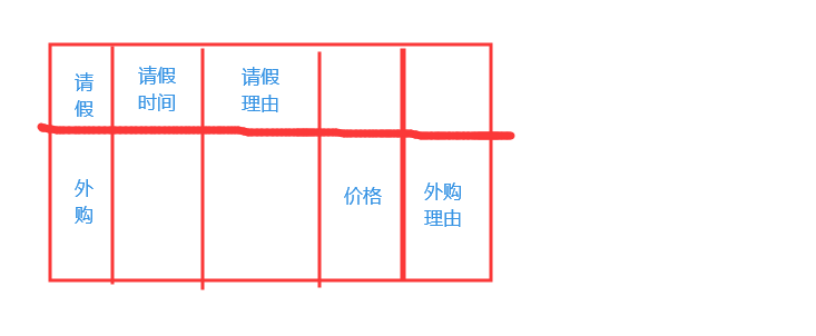 建立这样一张表,的确能够满足需求,只需要在创建外购的时候,请假的两个字段不填就好了(请忽略这张比较low的表)